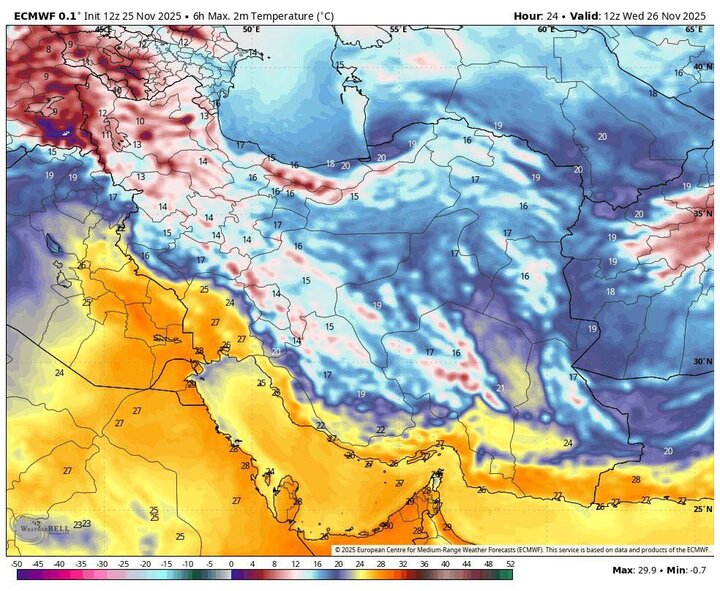 ضیائیان بیان کرد: امروز (چهارشنبه، ۵ آذر) در نوار شمالی و روز پنجشنبه (۶ آذر) در شمال‌شرق کشور روند دما به‌صورت نسبی کاهشی خواهد بود.