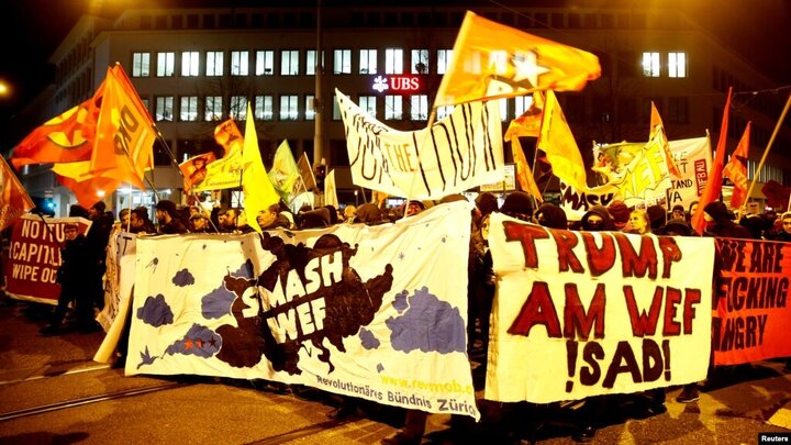 بیش از ۲ هزار نفر شامگاه دوشنبه در شهر زوریخ سوئیس، در یک تجمع اعتراضی مخالفت خود را با حضور دونالد ترامپ رئیس جمهوری آمریکا در مجمع جهانی اقتصاد (WEF) در داووس اعلام کردند.